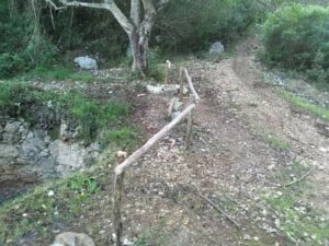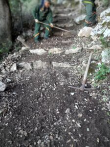 Gli interventi hanno riguardato la ripulitura dalla vegetazione che aveva invaso il sentiero, la sistemazione del piano viario, spietramento e la sistemazione delle buche e dei gradini con il riutilizzo di pietrame in loco, per agevolare il passaggio ed arginare gli effetti del dissesto dovuto a piogge, realizzazione di una scala di legno locale per facilitare il superamento di alcuni dislivelli/gradoni su roccia, messa in sicurezza dei “forni della calce” e ri-sistemazione di alcuni muretti a secco.