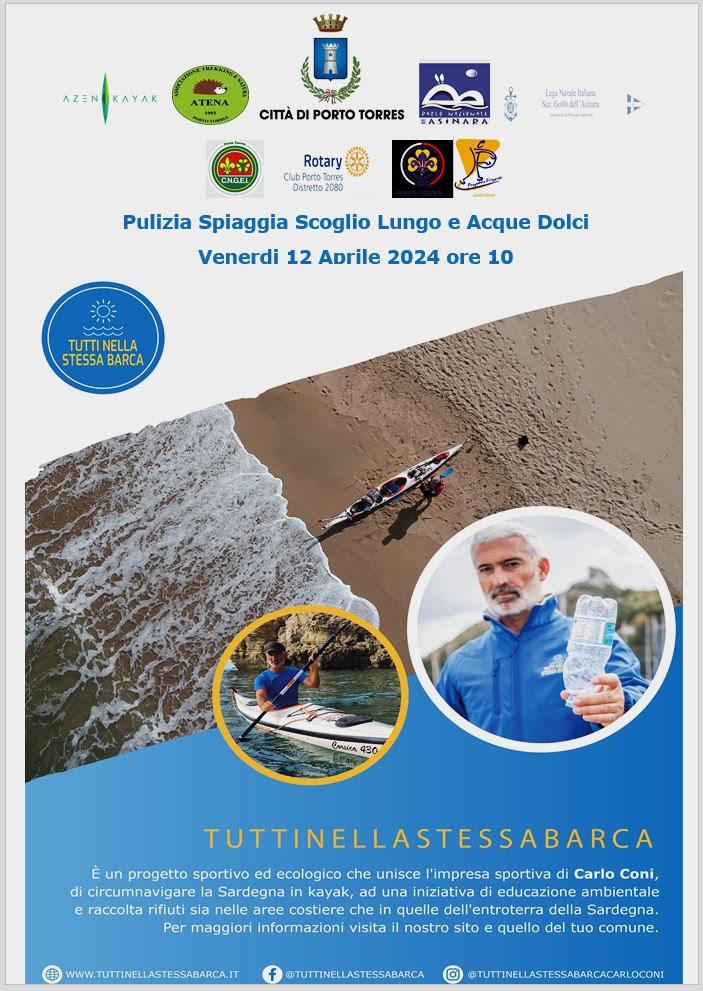 Porto Torres si prepara ad accogliere il kayaker cagliaritano Carlo Coni, impegnato dallo scorso 26 marzo in una circunmnavigazione della Sardegna in Kayak nell’ambito del progetto ecologico-ambientale “Tutti nella stessa barca”. Il suo tragitto, da compiere in un mese, prevede diverse tappe in 14 Comuni dell’isola dove vengono dedicate intere giornate alla pulizia dei litorali e delle aree interne.