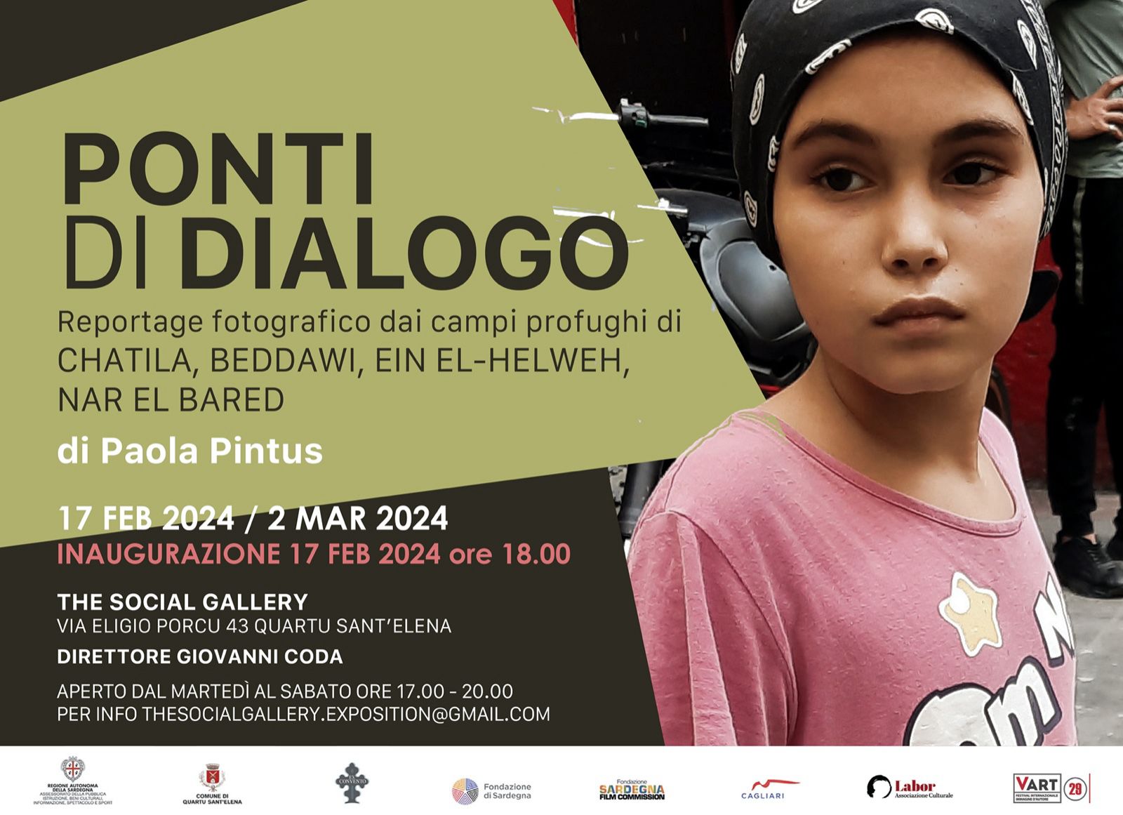 Il 17 febbraio si inaugura, alle 18.00, a Quartu Sant’Elena, nello spazio espositivo “The Social Gallery” in via Eligio Porcu 43, la mostra fotografica di Paola Pintus “Ponti di dialogo” – reportage fotografico dai campi profughi di Chatila, Beddawi, Ein El Helweh, Nar El Bared”.