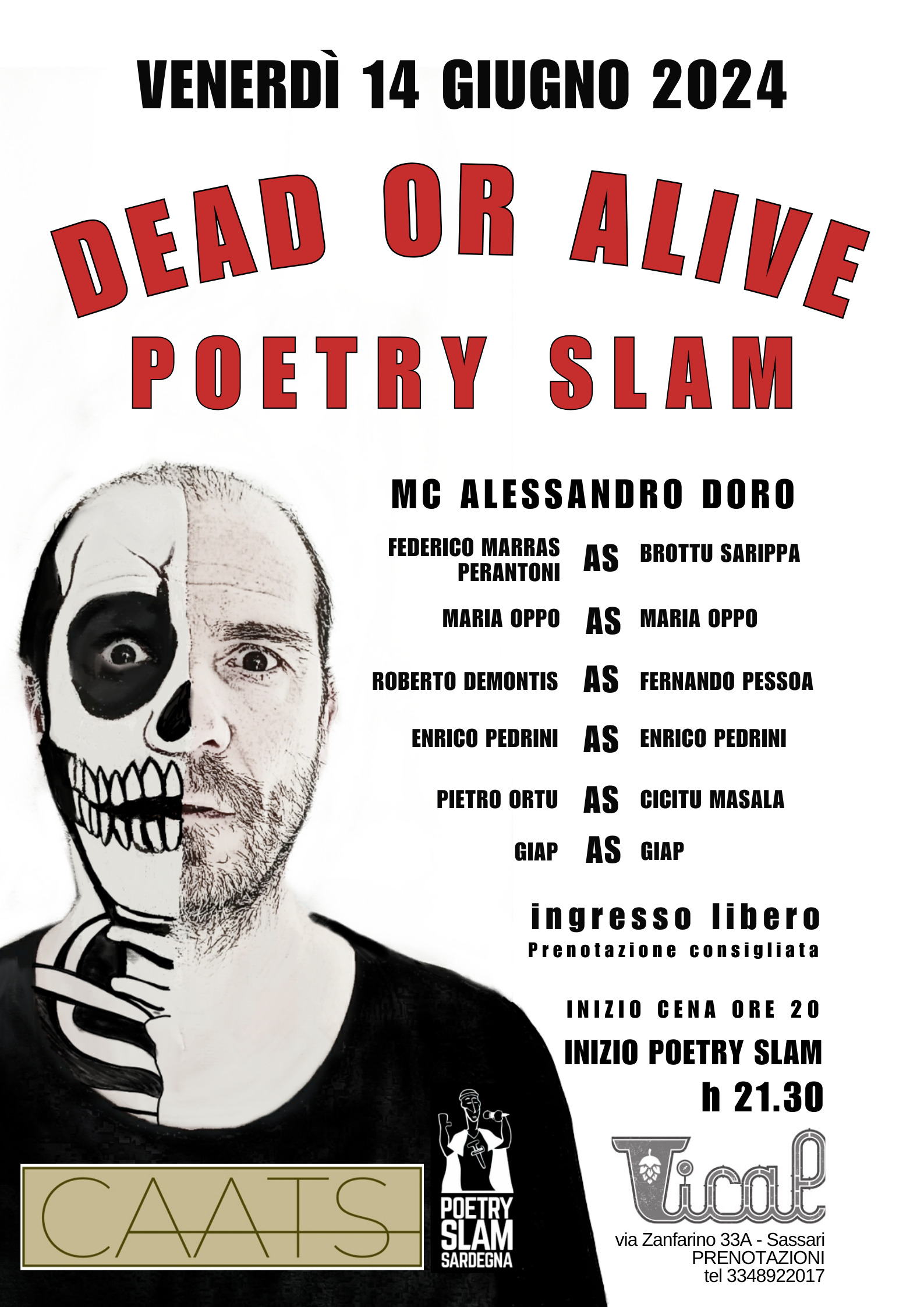 Cosa accadrebbe se i poeti passati incontrassero i poeti contemporanei? Da questa suggestione nasce il dead or alive poetry slam arriva a Sassari una competizione di poesia performativa unica nel suo genere che si terrà venerdì 14 giugno presso il TICAL, organizzata da CAATS – Consorzio Artisti Artigiani Turritani Sardi in collaborazione con Poetry Slam Sardegna.