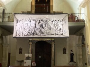 La grande tela “La fossa comune” ispirata all’eccidio di Bucha in Ucraina insieme a trentadue crocifissi disegnati su carta antica e ai ritratti dei papi Francesco e Giovanni Paolo II, sono le opere del noto artista toscano che hanno dato corpo alla mostra esposta tra marzo e aprile nell’antica chiesa del quartiere storico della Marina. Le opere di Lorenzo D’Andrea rappresentano un monito contro le atrocità delle guerre, racchiudono un messaggio di pace e speranza, un invito a recuperare quel senso di solidarietà e fraternità umana che si costruisce con il dialogo, il rispetto e la comprensione reciproca, come auspicato nel documento firmato nel 2019 da Papa Francesco e dal Grande Imam di Al-Azhar Sheikh Ahmed El-Tayeb «per diffondere la cultura della tolleranza, della convivenza e della pace».