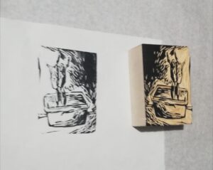 Giorgia Daka, con profondo senso esplicativo da laboratorio ed eccezionale manualità, ha realizzato una xilografia, elaborata da progetto a stampa, e informato sulla storia della carta e le caratteristiche che coniugano, tra tradizione e innovazione, le necessità delle attuali espressioni artistiche.