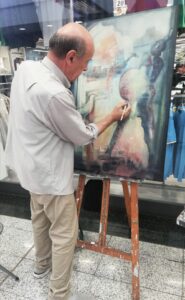 Gli estemporanei della pittura, comunità d’arte sociale, con i “ferri del mestiere” interpretano la percezione magica dei luoghi. Vivono il gioioso ed empatico confine dell’arte offerto da piazze, centri storici, angoli