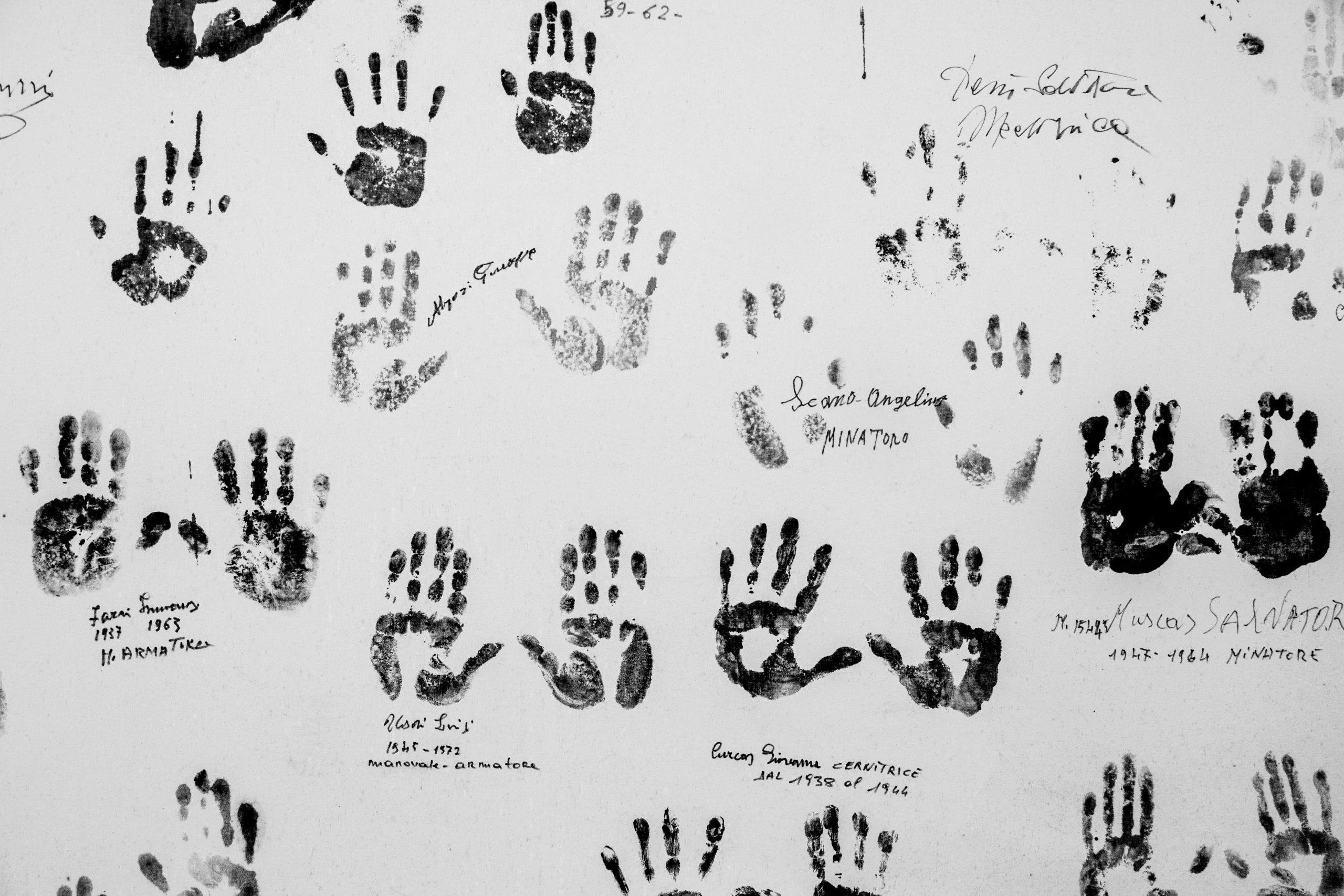 Fu sua l’ideazione della sindone dei minatori, il lenzuolo bianco che conserva le impronte delle mani degli anziani minatori, le mani del lavoro. Avviò questa emozionante opera, come solo le persone dotate di profonda sensibilità sanno fare, il giorno dell’inaugurazione del CICC nell’ormai lontano 3 novembre 2005. E’ da conservare come una reliquia sacra. Suo il manifesto gremito di croci, uno per ogni minatore caduto sul lavoro, affisso nella lampisteria: non si può guardarlo senza commuoversi.