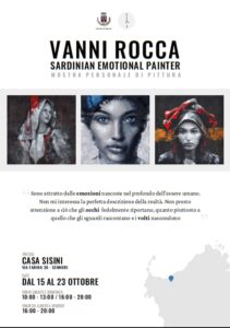 Il nuovo spazio espositivo di Casa Sisini, a Sennori, ospiterà dal 15 al 23 ottobre, una mostra personale del pittore locale Vanni Rocca dal titolo “Sardinia Emotional Painter”,