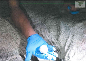 I biologi dell’area marina protetta e del CNR di Oristano hanno accertato la deposizione di almeno un uovo e di conseguenza si è proceduto a ricoprire il nido con la sabbia e a recintare l’area apponendo un cartello della rete regionale per la conservazione della fauna marina Sardegna, attestante il sito di nidificazione della Caretta caretta.