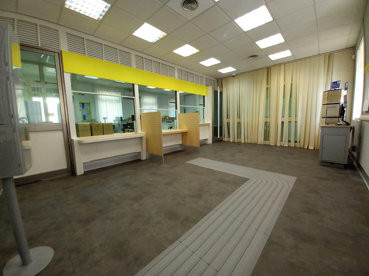 Tra i principali interventi, la funzionale ottimizzazione degli spazi, la nuova configurazione della sportelleria con altezze ribassate per agevolare tutti i segmenti di clientela, le postazioni di lavoro ergonomiche per favorire posture corrette, la posa di un percorso in rilievo sul piano di calpestio per consentire alle persone con deficit visivi la piena autonomia negli spostamenti all’interno della sala al pubblico senza l’ausilio di assistenza.
