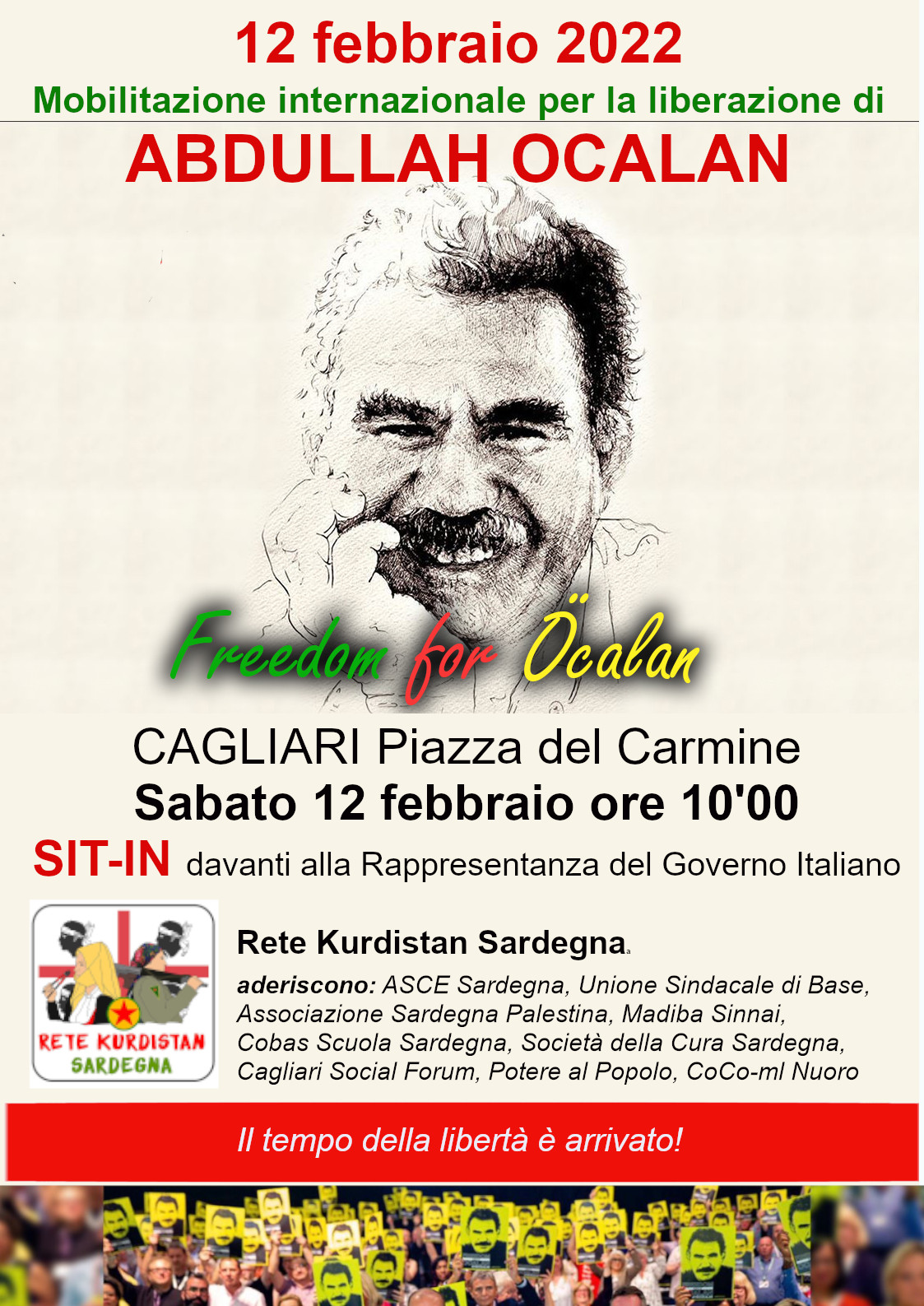 Domani, sabato 12 febbraio, alle 10.00, in contemporanea con Roma, Milano e numerose altre città d’Italia e di tutta l’Europa, anche Cagliari ospiterà una manifestazione (piazza del Carmine, di fronte alla Rappresentanza del Governo italiano) per chiedere la liberazione di Abdullah Öcalan, il leader del PKK (Partitodei Lavoratori Kurdistan) che da 23 anni è rinchiuso nel carcere di massima sicurezza di Imrali, una piccola isola della Turchia collocata nel Sud del Mar di Marmara.