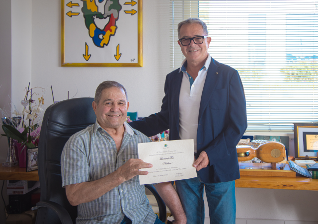 Il sindaco di Olbia, Settimo Nizzi, si è recato nel cantiere navale Fois per consegnare un riconoscimento a Leonardo Fois, conosciuto in città come Nardino, e congratularsi con lui per i 40 anni di attività della sua famiglia.