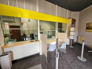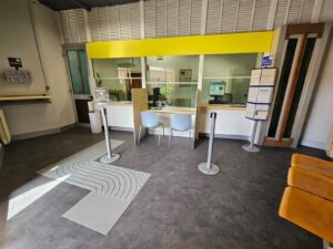 Tra i principali interventi, la funzionale ottimizzazione degli spazi, la nuova configurazione della sportelleria con altezze ribassate per agevolare tutti i segmenti di clientela, le postazioni di lavoro ergonomiche per favorire posture corrette, la posa di un percorso in rilievo sul piano di calpestio per consentire alle persone con deficit visivi la piena autonomia negli spostamenti all’interno della sala al pubblico senza l’ausilio di assistenza.