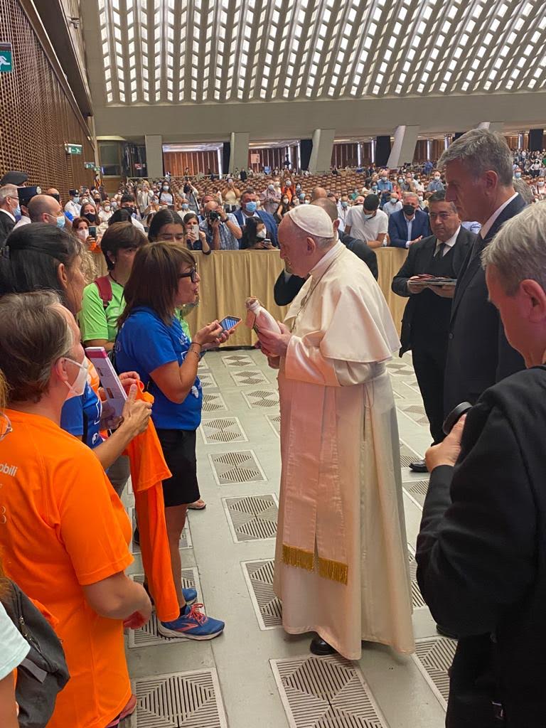 Il Papa ha poi congedato gli atleti e i loro accompagnatori impartendo loro la Benedizione per il proseguo del loro cammino e ha ricevuto con piacere la maglia donata dagli stessi atleti.