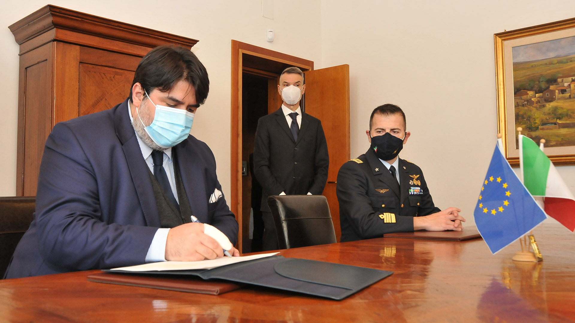 Il presidente della Regione Christian Solinas ha posto la sua firma e un pensiero sulla pergamena che ricorda i 100 anni dalla proclamazione della Madonna di Loreto a Santa protettrice dell’Aeronautica Militare e di tutti gli aviatori. La Madonnina di Loreto nei giorni scorsi aveva fatto tappa a Cagliari nell’ambito del Giubileo itinerante organizzato dal corpo militare. Questa mattina, alla presenza del comandante del reparto sperimentale e di standardizzazione Tiro aereo della base di Decimomannu, colonello Cosimo De Luca, il presidente Christian Solinas ha firmato una pagina del “Diario di viaggio” che accompagna la Statua della Vergine lauretana: «Il Giubileo lauretano possa – ha scritto il presidente Christian Solinas -, ricordando la storica devozione, garantire sempre la Santa intercessione della Madonna di Loreto affinché la nostra Aeronautica goda della protezione e dei successi che auspichiamo copiosi nei nostri cuori».