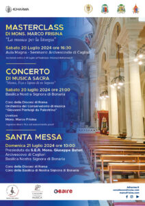 Sarà la Basilica di Nostra Signora di Bonaria a ospitare, sabato 20 luglio, il concerto di musica sacra “Mama, Fiza e Isposa de Su Segnore” che vedrà la partecipazione di 50 coristi della Diocesi di Roma diretti dal Maestro Mons. Marco Frisina, sacerdote, biblista e compositore di fama internazionale, accompagnati dall’Orchestra del Conservatorio di Musica di Cagliari.