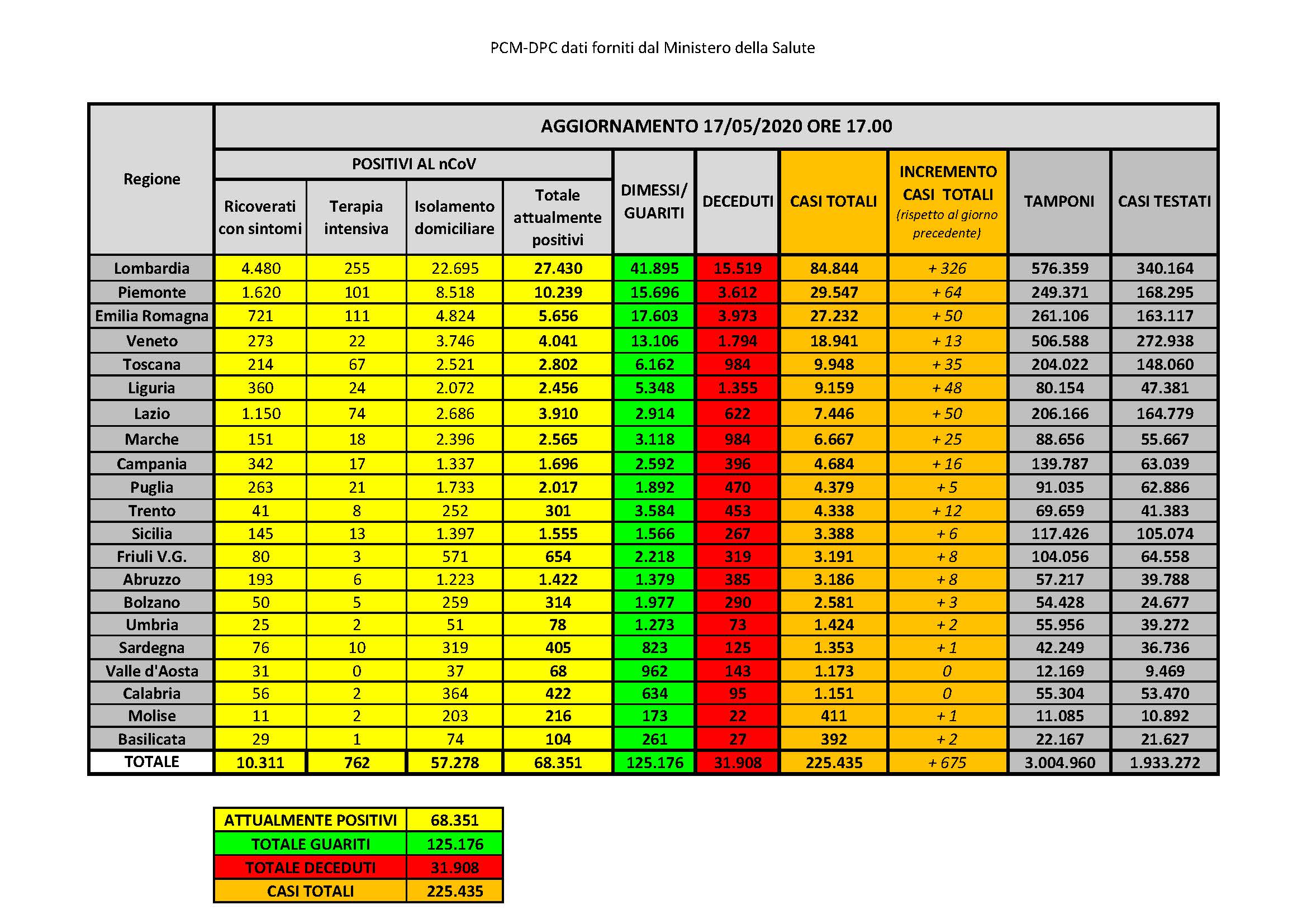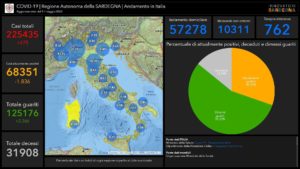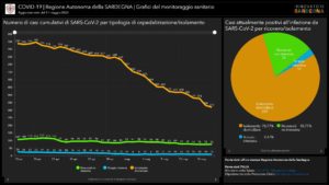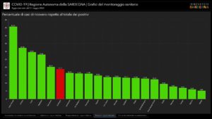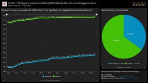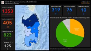 1 solo nuovo caso positivo al Covid-19 nelle ultime 24 ore in Sardegna su 992 tamponi eseguiti. Sono ora 1.353 i casi accertati dall’inizio dell’emergenza. Si registra un solo nuovo caso nella Città Metropolitana di Cagliari. È quanto rilevato dall’Unità di crisi regionale nell’ultimo aggiornamento. In totale nell’Isola sono stati eseguiti 42.249 tamponi. I pazienti ricoverati in ospedale sono in tutto 86, di cui 10 in terapia intensiva, mentre 319 sono le persone in isolamento domiciliare. Il dato progressivo dei casi positivi comprende 731 pazienti guariti (+12 rispetto al dato precedente), più altri 92 guariti clinicamente. Non si registrano nuovi decessi (complessivamente 125).