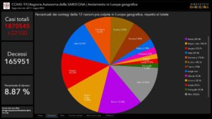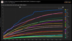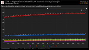 Sul territorio, dei 1.353 casi positivi complessivamente accertati, 248 sono stati registrati nella Città Metropolitana di Cagliari, 97 nel Sud Sardegna, 58 a Oristano, 79 a Nuoro, 871 a Sassari.
