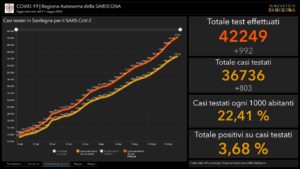 1 solo nuovo caso positivo al Covid-19 nelle ultime 24 ore in Sardegna su 992 tamponi eseguiti. Nessun decesso