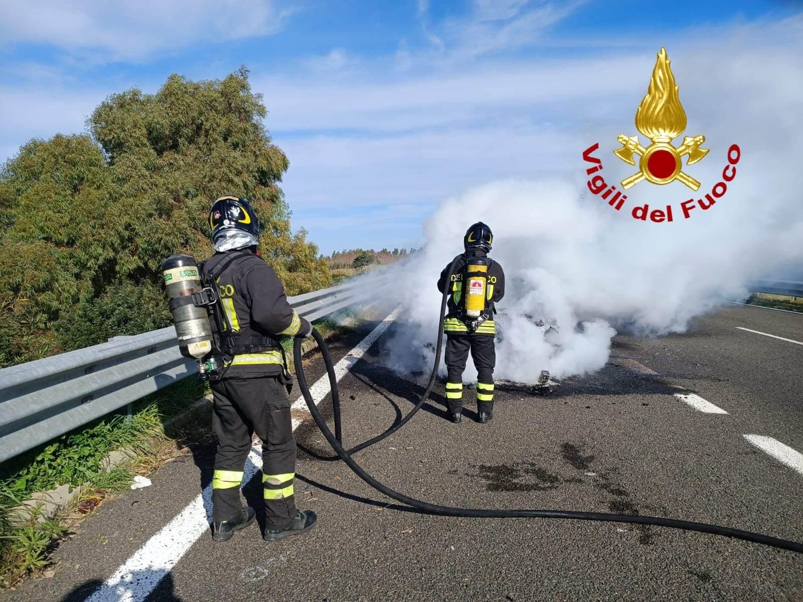A fuoco un’autovettura sulla Sassari-Alghero, intervengono i vigili del fuoco