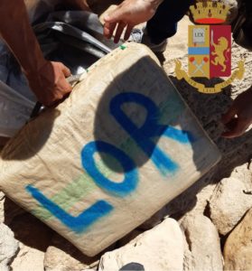 Il manufatto realizzato in tessuto, nylon e nastro adesivo, aveva le sembianze di una valigia, con tanto di manico. Da una lacerazione dalla quale se ne intravedeva l’interno, gli agenti hanno subito intuito la presenza di sostanza stupefacente. Le dimensioni e il peso del pacco hanno reso ancora più difficile il recupero da parte dei poliziotti, che hanno dovuto chiedere l’ausilio di un’unità di navigazione dell’Ufficio Circondariale Marittimo di Carloforte.