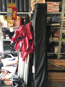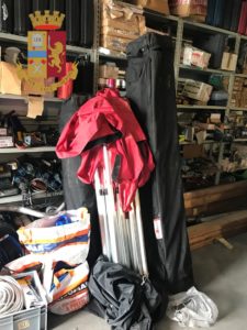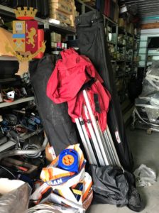 Nell’area esterna di pertinenza all’immobile occupato giacevano alcune smerigliatrici, trapani, diverso materiale elettrico e tre gazebo, due con la copertura di colore nero e uno con la calotta in colore rosso.