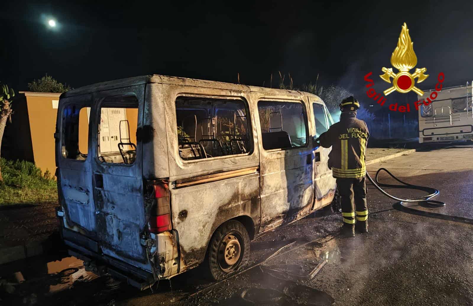 Intervento dei vigili del fuoco ieri, intorno alle 18.30, in via Mazzini, angolo via De André, ad Alghero, per l’incendio di un furgone.