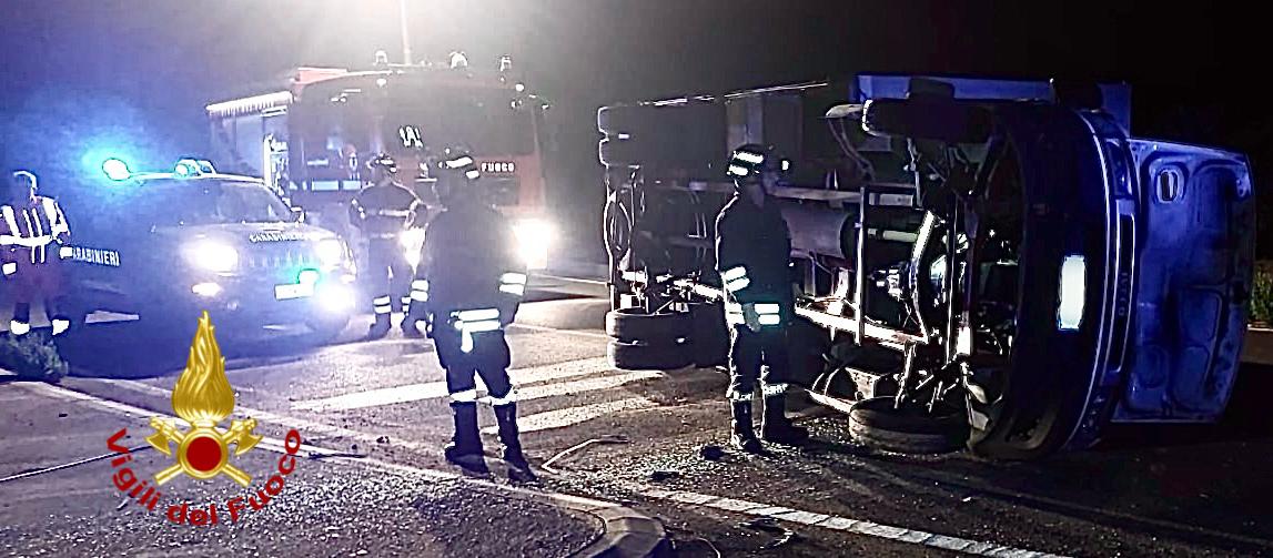 Intorno alle 2.00 la squadra del distaccamento dei vigili del fuoco  di Alghero è intervenuta nella rotatoria di Rudas, sulla strada statale 127bis per il ribaltamento di un furgone. Per cause da accertare, il conducente ha perso il controllo e, dopo aver toccato il cordolo della rotatoria, ha finito la sua corsa su un fianco. Il conducente riusciva ad uscire dall’abitacolo da solo riportando alcune escoriazioni. Sul posto hanno operato anche i carabinieri e il 118.