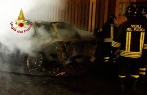 Assemini: a fuoco un’autovettura in sosta, sul posto i vigili del fuoco