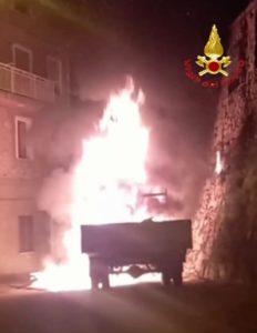 Nella serata di ieri, una squadra dei vigili del fuoco di Nuoro è intervenuta nel centro abitato di Bitti, a seguito di un incendio che ha interessato un camioncino. Gli operatori hanno spento le fiamme che hanno interessato il mezzo di proprietà di una ditta che si occupa di rilievi del sottosuolo. Ingenti i danni riportati dal mezzo. Sembrerebbe chiara la matrice dolosa. Negli stessi istanti la squadra è stata informata dai carabinieri di un secondo attentato incendiario a carico di una vettura di proprietà di un residente che è stata presa di mira da sconosciuti, ma che grazie all’immediato intervento del proprietario non ha riportato gravi conseguenze. Sull’accaduto indagano i carabinieri di Bitti.