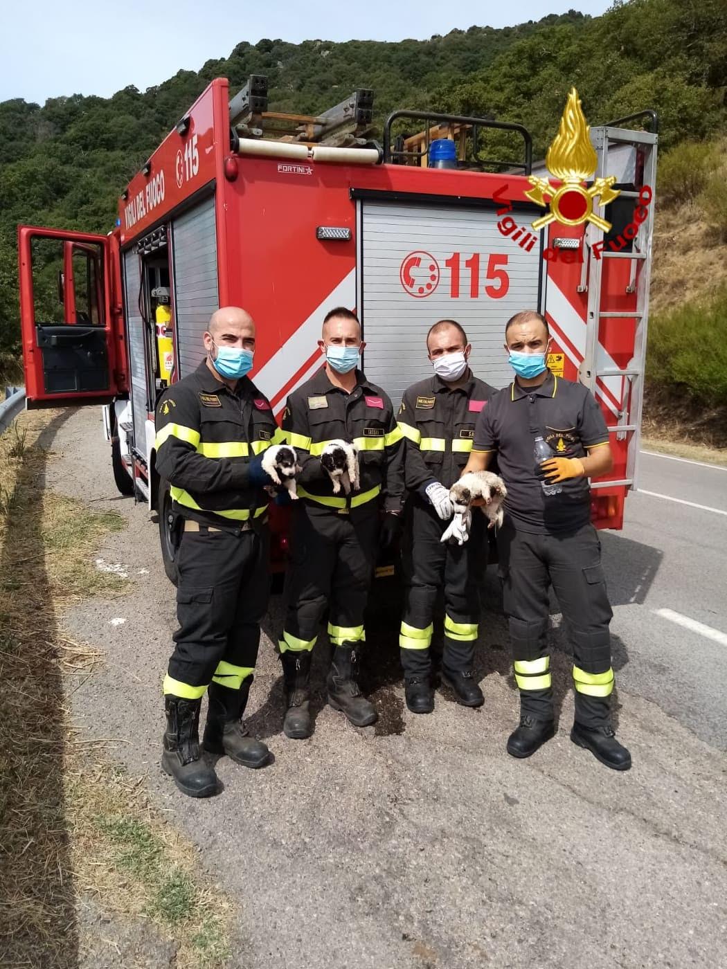 Intorno alle 11,30, i vigili del fuoco del distaccamento di Bono sono intervenuti sulla strada statale 111 Bono-Burgos, per salvare tre cuccioli di razza maremmana.