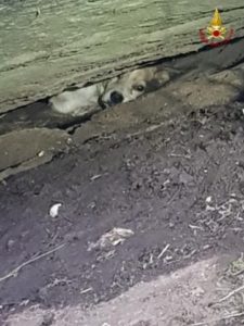 Durante le operazioni di salvataggio, i vigili hanno rifocillato e dissetato il can fin dentro il cunicolo, nell’attesa dell’arrivo dei mezzi pesanti.