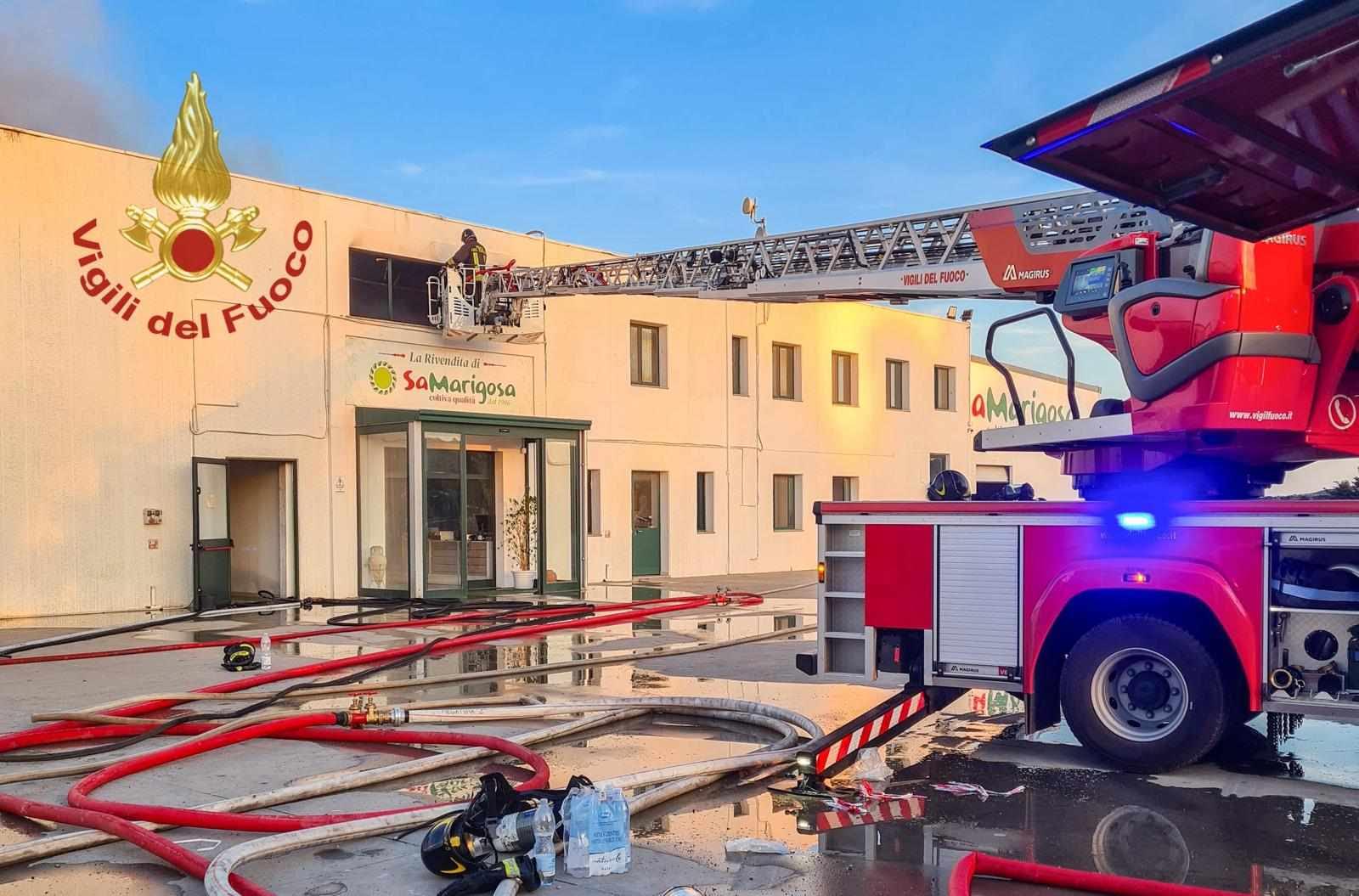 I vigili del fuoco del comando di Oristano sono intervenuti per l’incendio di un capannone industriale, a Cabras.