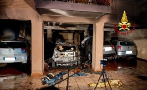 Cagliari: a fuoco autovetture e moto in sosta, intervengono i vigili del fuoco