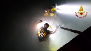 Salvo il personale a bordo. Gli operatori del nucleo Sommozzatori hanno localizzato l’imbarcazione immersa nelle acque e hanno effettuato una prima verifica per pianificare le operazioni di recupero dell’imbarcazione che ha un peso di circa 58 tonnellate.