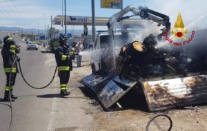 I vigili del fuoco sono intervenuti nel viale Guglielmo Marconi, a Cagliari, per l’incendio di un autocarro, in fiamme il carico trasportato sul cassone. Gli operatori della squadra di pronto intervento dei vigili del fuoco inviati dalla sala operativa del 115, con un’APS e l’ausilio di un’autobotte, hanno delimitato l’area e spento il rogo evitando la propagazione delle fiamme all’intero automezzo limitando i danni al veicolo, nelle vicinanze anche un distributore carburanti Nessuna persona è rimasta coinvolta.