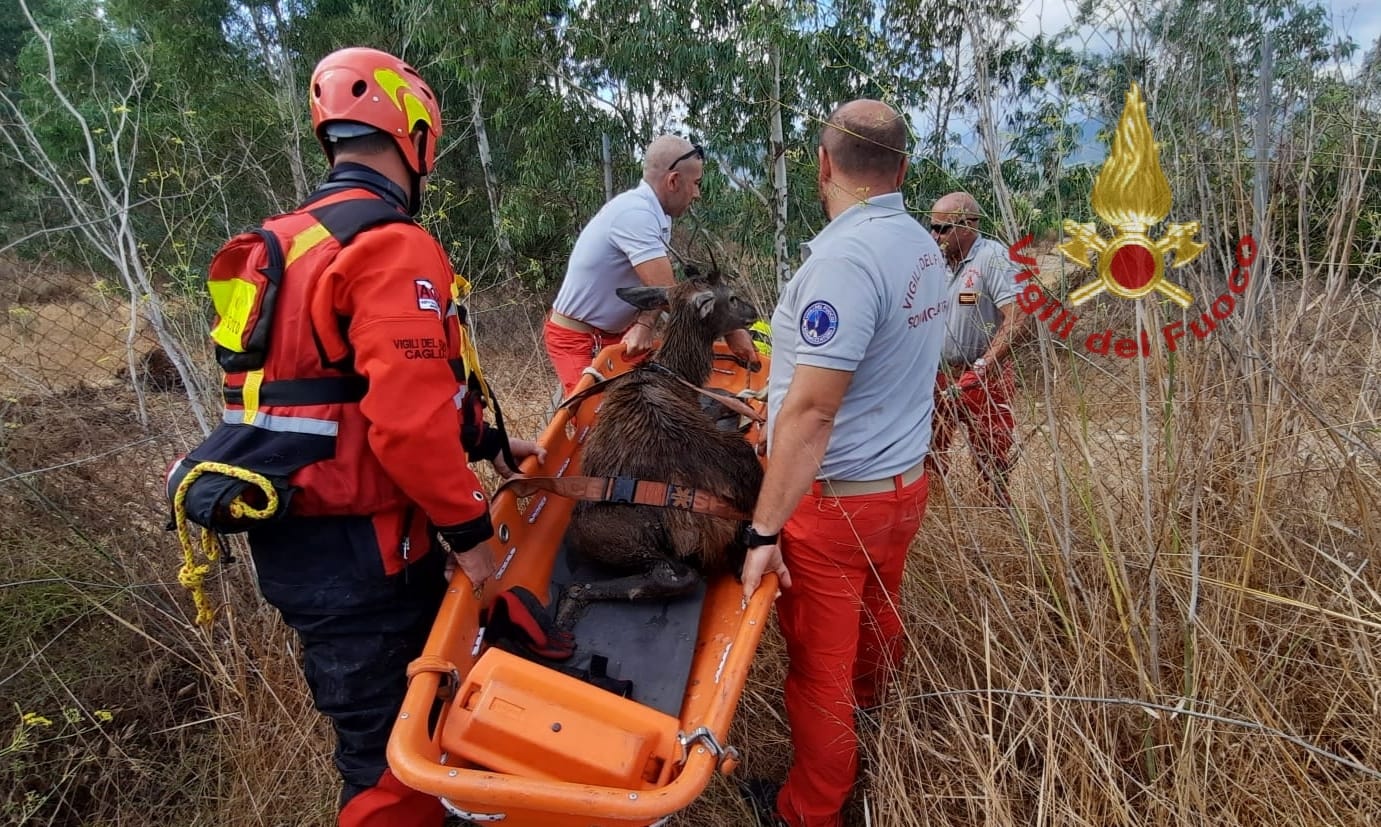 La squadra ‘8A’ del distaccamento di San Vito, il nucleo sommozzatori dei vigili del fuoco del distaccamento cittadino portuale di Cagliari hanno effettuato il recupero dell’animale, affidandolo al Corpo forestale regionale. Un veterinario ha verificato le condizioni di salute dello stesso animale.