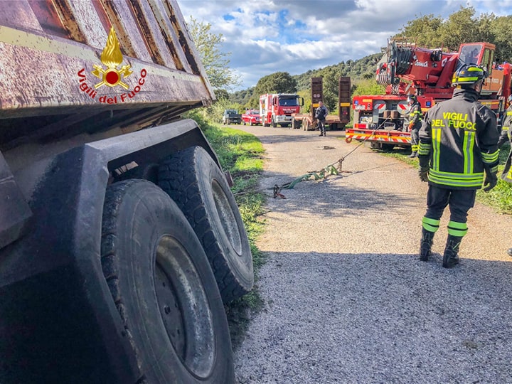 Nel tardo pomeriggio di ieri, i vigili del fuoco sono dovuti intervenire in località San Lorenzo, a Cuglieri, dove un camion di 19 tonnellate, con carico a bordo, mentre stava compiendo una manovra, è uscito dalla carreggiata inclinandosi lateralmente.