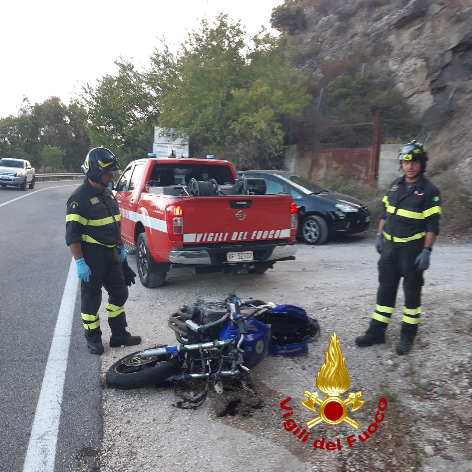 La squadra 1A dei vigili del fuoco è intervenuta intorno alle 6.15 all’altezza del chilometro 202 della strada statale 125 a Dorgali dove un 39enne ha perso il controllo della sua moto andando ad impattare su una roccia per poi essere sbalzato fuori dalla carreggiata.