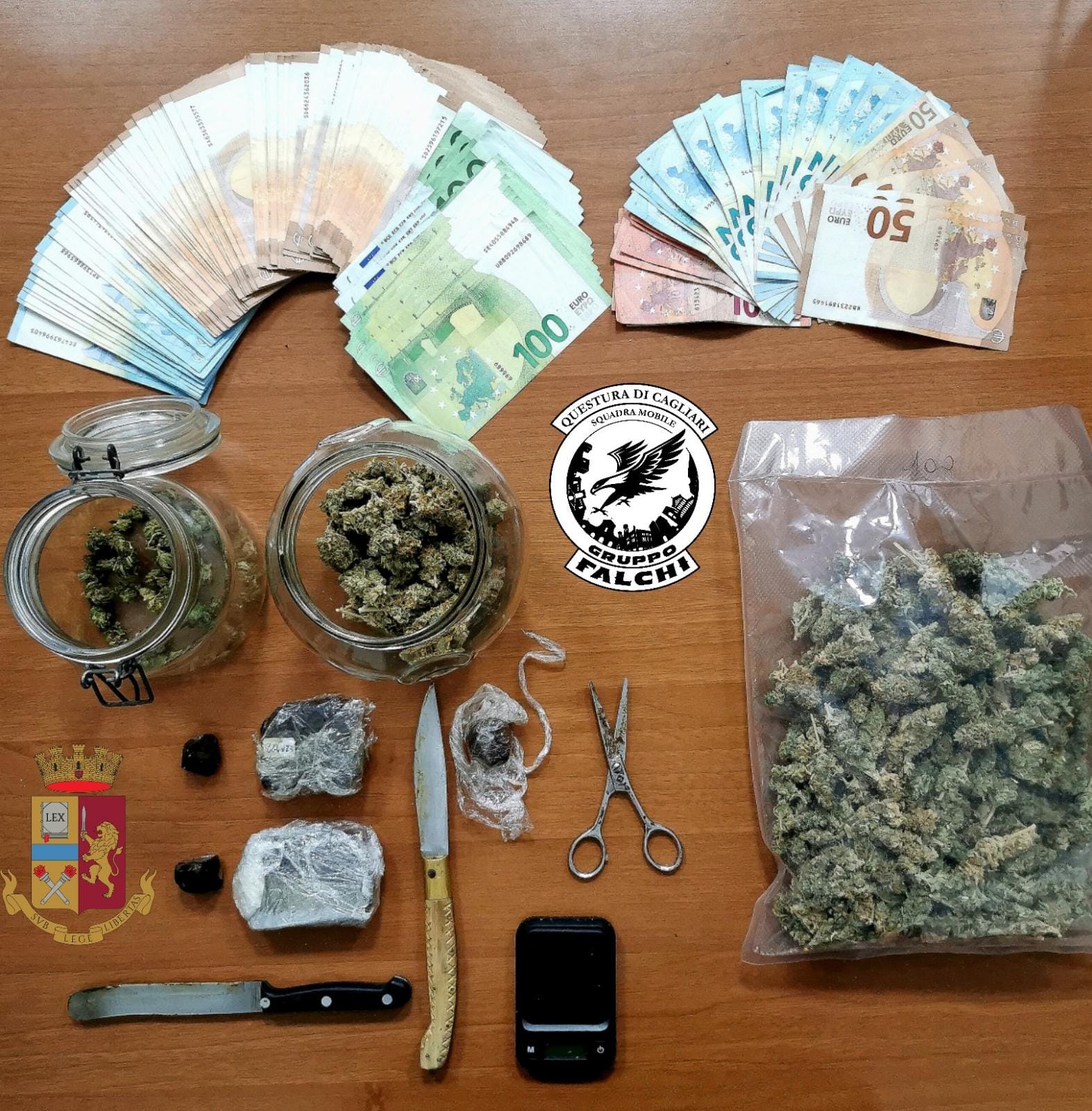Gli investigatori tenevano da giorni sotto osservazione il giovane quartese che aveva adibito la sua abitazione al piano terra a market della droga aperto a tutte le ore. Nella tarda serata è scattato il blitz. I poliziotti hanno scoperto che un bagno era diventato un laboratorio con tutto l’occorrente per pesare e confezionare la droga. L’operazione ha permesso di sequestrare tre etti di Marijuana e Hashish e più di seimila euro in contanti.
