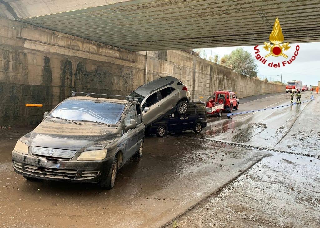 E’ rimasto a lungo interrotto il transito del sottopasso ferroviario a Terralba, svuotato con autopompa a grande portata; alcune macchine hanno ingombrato la carreggiata e si è lavorato per rimuoverle.