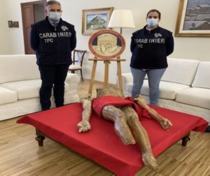 – il recupero di un crocifisso ligneo del XV secolo, di scuola toscana, che era stato sottratto alla Chiesa del Santissimo Crocifisso di Galtellì alla fine degli anni Ottanta. Le indagini, coordinate dalla Procura di Firenze, hanno permesso di risalire alla pregevole opera a seguito degli accertamenti svolti su di un sito e-commerce, allorquando un antiquario toscano aveva pubblicato un annuncio per proporre la vendita di una statua con l’attestazione di provenienza “da una Chiesa del nord Sardegna”