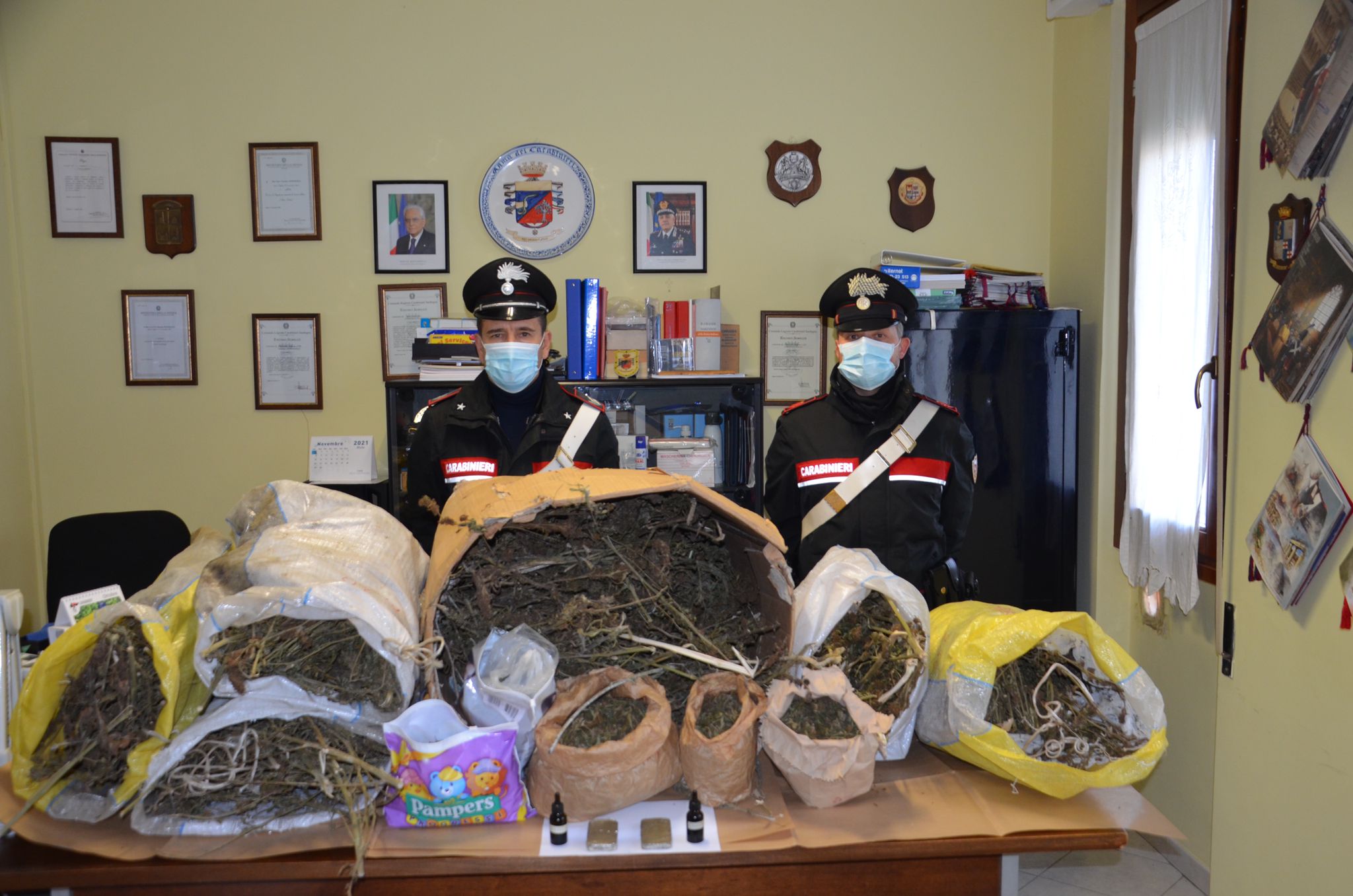I carabinieri di Dolianova hanno rinvenuto 14 kg di marijuana, 120 grammi di hashish ed un ciclomotore rubato in un’abitazione di via Soleminis