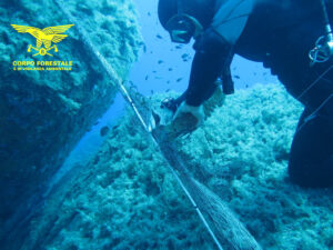 La rete recuperata era lunga oltre 300 metri e continuava a catturare pesci destinati inevitabilmente alla morte e al deterioramento. Al momento del recupero erano presenti 20 esemplari tra cicale di mare, dentici e altre specie ittiche.
