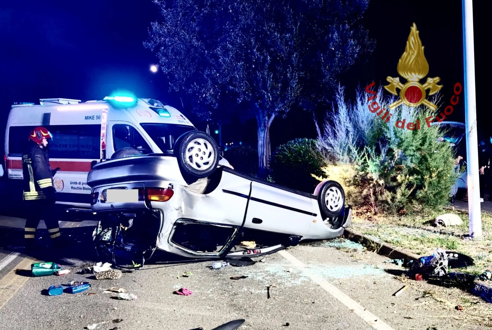 Incidente poco dopo la mezzanotte in via Lungo Saline a Cagliari, a seguito di un incidente stradale dove per cause da accertare, un’auto con cinque persone a bordo, si è ribaltata sulla sede stradale, urtando un lampione dell’illuminazione pubblica. I vigili del fuoco hanno provveduto alla messa in sicurezza del veicolo e della sede stradale. Sul posto sono intervenute diverse ambulanze per soccorrere gli occupanti del veicolo. Si registrano cinque feriti, tutti soccorsi e trasferiti in ospedale dal personale medico sanitario del Servizio Territoriale di Emergenza del 118 con codice rosso.