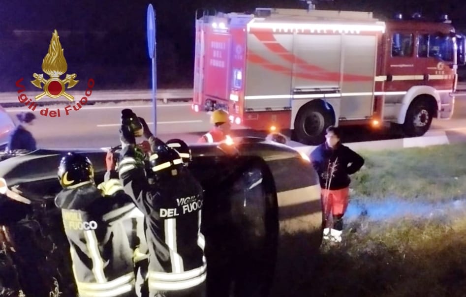 Per cause ancora da accertare, un’auto con a bordo due donne è uscita di strada ribaltandosi su un fianco, all’esterno dalla carreggiata,