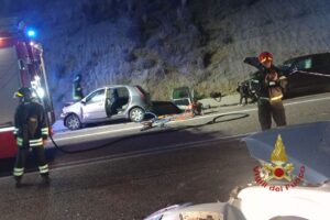 La squadra di pronto intervento “8A” del distaccamento dei vigili del fuoco di San Vito è intervenuta poco dopo le ore 18.00 di oggi, per un incidente avvenuto sulla nuova strada Statale 125 Orientale Sarda, all’altezza del distributore carburanti in territorio di Solanas, frazione del comune di Sinnai, dove per cause ancora da accertare tre auto sono rimaste coinvolte in uno scontro.