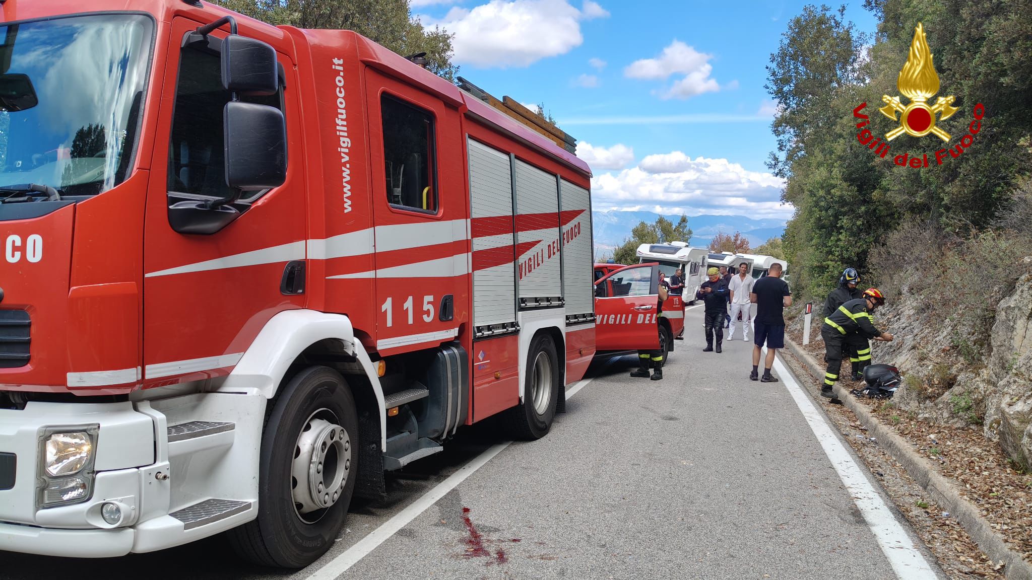 I vigili del fuoco del Comando di Nuoro sono intervenuti per un incidente stradale che ha coinvolto una motociclista Svizzera, due camper e una Land rover provenienti dalla parte opposta.