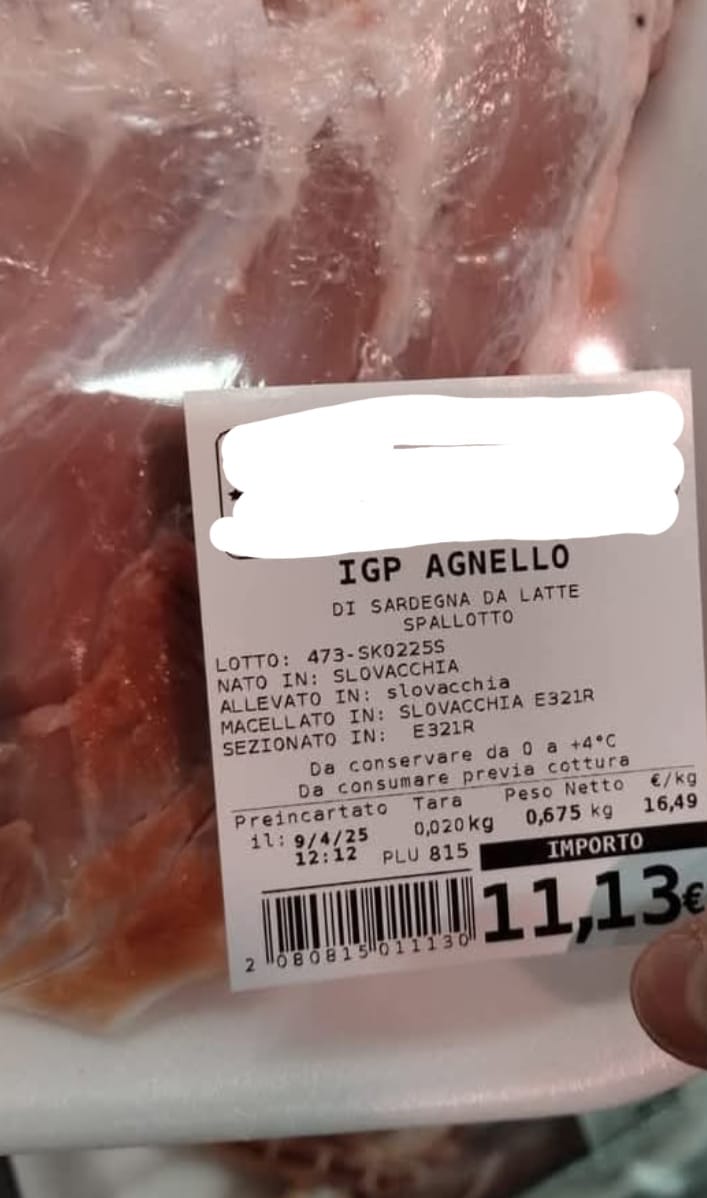 L’involucro segnalato dai consumatori conteneva un cosciotto di origine slovacca, etichettato come “Agnello di Sardegna IGP”.