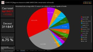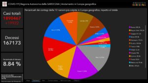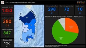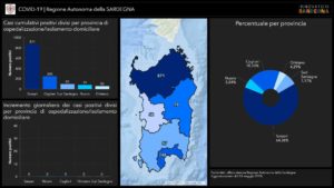 Sul territorio, dei 1.353 casi positivi complessivamente accertati, 248 sono stati registrati nella Città Metropolitana di Cagliari, 97 nel Sud Sardegna, 58 a Oristano, 79 a Nuoro, 871 a Sassari.