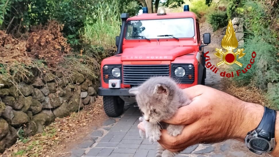 Una donna, mentre faceva una passeggiata, ha sentito miagolare e, avvicinandosi al muretto, si è accorta della difficoltà del piccolo animale. Da lì la chiamata ai vigili del fuoco. La squadra, prontamente intervenuta, ha liberato il cucciolo e lo ha affidato alle coccole della richiedente.