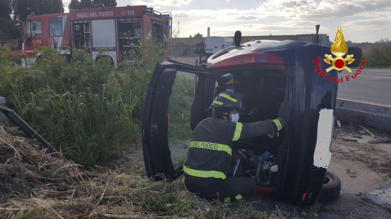 La squadra dei vigili del fuoco di Oristano è  intervenuta per un’autovettura che si è ribaltata nella rotonda di Nuraxinieddu.