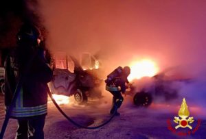 Intorno a mezzanotte e mezza i vigili del fuoco sono intervenuti per l’incendio di due autovetture in via Sole e Luna, ad Olbia. Al loro arrivo, gli operatori hanno provveduto ad estinguere le fiamme che hanno interessato una Fiat punto ed un furgone Daily parcheggiati vicini. Entrambi i mezzi hanno riportato ingenti danni. Sono in corso gli accertamenti per risalire alle cause del rogo.